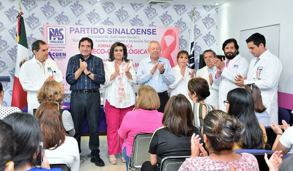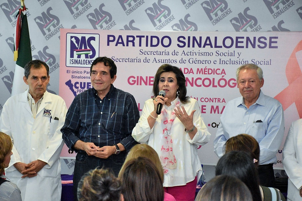 * Dip. Angélica Díaz brindó su apoyo a todas las mujeres afectadas y les dijo, que no las dejará solas. Culiacán, Sinaloa.- El Partido Sinaloense implementa estrategias de salud, como la prevención, en las que la mujer juega un papel primordial, sobre todo, si se habla en la enfermedad que más causa muertes en el mundo, como lo es el cáncer de mama, señaló el presidente del PAS, Héctor Melesio Cuén Ojeda, al poner en marcha la Jornada Médico Gineco-Oncológica, organizada por la Secretaría de Activismo Social, que encabeza la diputada Angélica Díaz de Cuén, en el marco de octubre, mes de concientización en la lucha contra el Cáncer de Mama. La diputada Angélica Díaz de Cuén exhortó a mujeres militantes y simpatizantes del Partido Sinaloense no dejar de lado la prevención para evitar este flagelo que cada día cobra más vidas. Dijo que en los consultorios del PAS, se brindará atención médica a todas las mujeres que requieran de una revisión, mismas que de ser necesario serán canalizadas a las instancias médicas correspondientes. "De detectarles algún indicio, téngalo por seguro que no las dejaremos solas, en el PAS las estaremos acompañando en todo su proceso". Por su parte, el médico Gineco-Oncologo, Aureliano Olivas, en su exposición explicó que cualquier sintoma que se identifique, por más sencillo que sea, no se debe dejar pasar porque ello puede significar vida, añadió que el cáncer de mamá no se presenta únicamete en las mujeres, pues uno de cada 3 hombres lo padecen. Dijo que a nivel mundial se diagnóstican anualmente más de un millón 600 mil nuevos casos de cáncer de mama y mueren 500 mil mujeres a nivel mundial. Durante este evento estuvieron presentes, el Secretario General, Víctor Antonio Corrales Burgueño, secretarios del Comité Ejecutivo Estatal, personal administrativo del PAS, así como público en general.